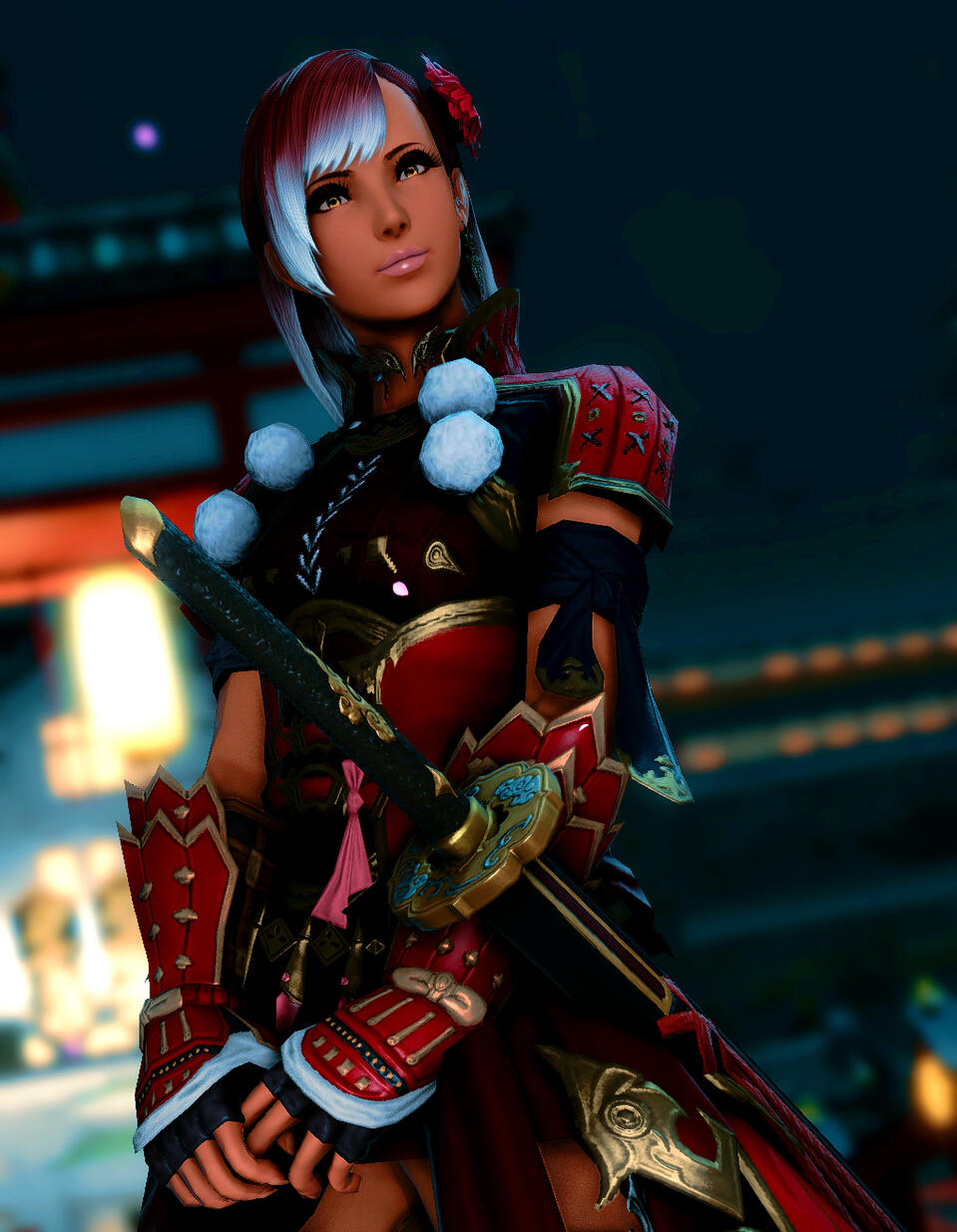 But knowing what she had done in the years prior, they cast her out. With no recourse but to throw herself on a Garlean blade or flee further, she elected to head towards Hingashi. A sympathetic fisherman saw her across the Ruby Sea... in exchange for her sword. Though reluctant, she had already lost her lord, her home, and her honour. The sword could be reclaimed, someday. Thus she parted with it.