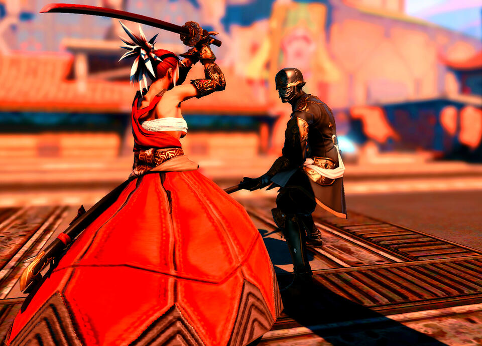 The viera was possessed of an almost preternatual ability to predict the attacks the doman threw at her, dodging and repelling blows with an impossibly keen arsenal. Meanwhile the samurai made use of the aetherial arts passed down to her from her tengu teacher.
