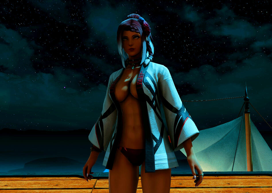 Her face known to them, Akasha knew she could not stay. Passing up whatever trinkets she carried, the samurai managed to bargain herself passage aboard a merchant ship from the West. They would take her with them to Limsa Lominsa, a city-state in the land of Eorzea.